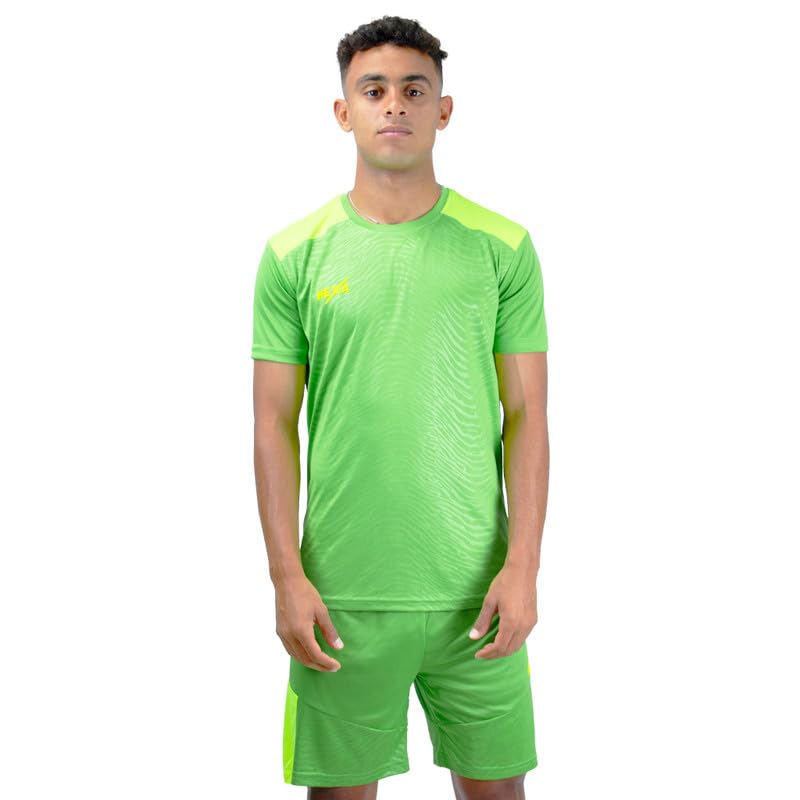 HEXA - طقم فيوجن للرجال والنساء - طقم كامل (جيرسيه + شورت) - قصة جافة، تصميم منقوش - 100% بوليستر - اخضر - مقاس M 10006 - اخضر - مقاس M