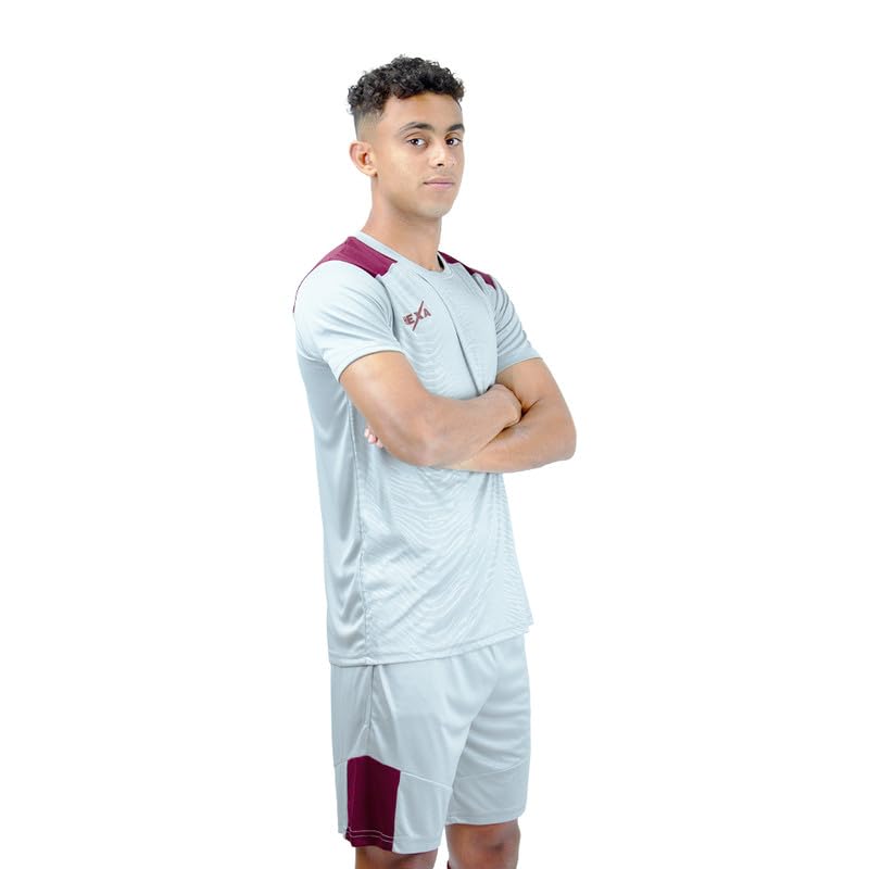HEXA - طقم هيكسا فيوجن للرجال والنساء - طقم كامل (جيرسيه + شورت) - قصة جافة، تصميم منقوش - 100% بوليستر، لون رمادي، مقاس اكس لارج، موديل 10006