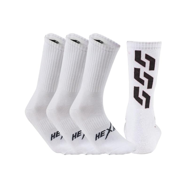 HEXA - شرابات طويلة من هيكسا- عبوة من 3 قطع- شرابات بيضاء طويلة لنصف الساق من القطن والايلاستين- مثالية لجميع الرياضات والجيم والتدريب