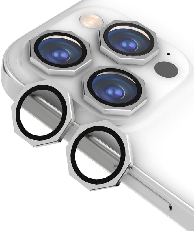 ELMO3EZZ - واقي عدسة سداسي لموبايل ايفون 16 برو/ايفون 16 برو ماكس 9H غطاء كاميرا من الزجاج المقوى مع حلقة معدنية، مقاوم للخدش، حماية عدسة الكاميرا المزخرفة - 3 عبوات (فضي)