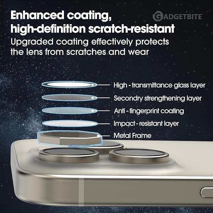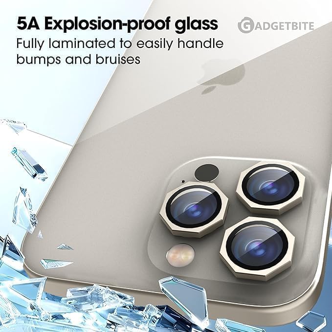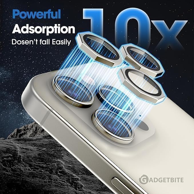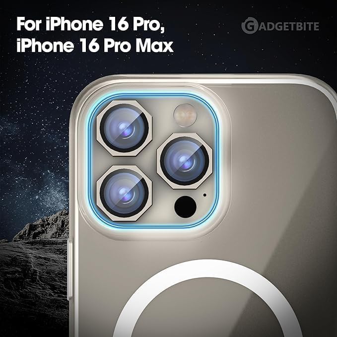 Whats Mob - واقي عدسة كاميرا معدني سداسي متوافق مع آيفون 16 برو ماكس/ 16 برو من الزجاج المقوى ومضاد للخدش ووضوح عالي الدقة HD، مناسب للجراب بلون رمادي