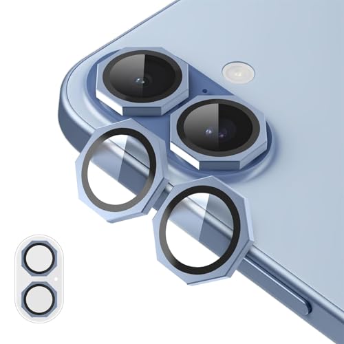 Whats Mob - واقي عدسة كاميرا معدني سداسي متوافق مع ايفون 17 - غطاء عدسة من الزجاج المقسى، مضاد للخدش، وضوح HD، مناسب للجراب، أزرق فاتح
