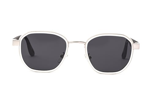Generic - نظارة شمسية باطار معدني سداسي، اطار فضي مع عدسات رمادية داكنة، حماية من الاشعة فوق البنفسجية، للجنسين