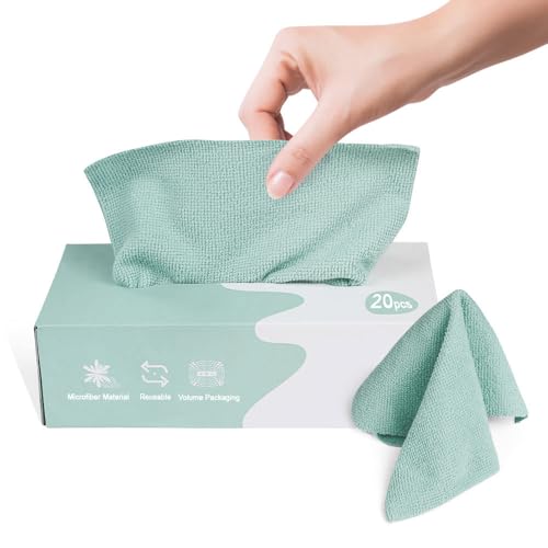 HEXAR - قطعة قماش للتنظيف من المايكروفايبر 20 قطعة من هيكسار®، قطعة قماش قابلة للإزالة واعادة الاستخدام، فوطة شاي، فوطة يد، فوطة للتنظيف قوية الامتصاص لإزالة التلوث لتنظيف المنزل والمطبخ (فردية)