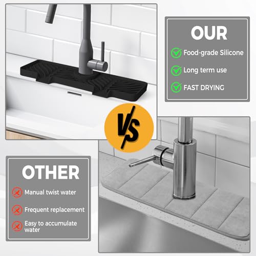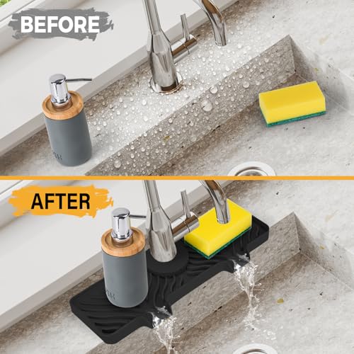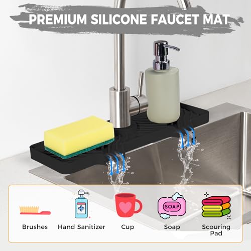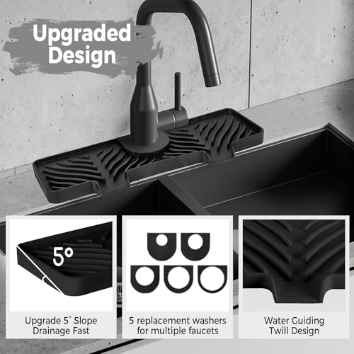Hexola - واقي رذاذ صنبور سيليكون، واقي حوض المطبخ بمنحدر 5 درجات، بساط صنبور 38 سم مع 5 أحجام من الحلقات المطاطية من هيكسولا، أسود