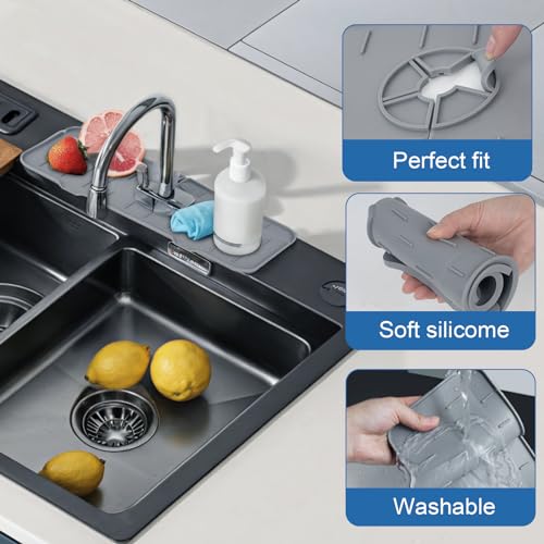 Heyai - واقي رذاذ حوض المطبخ، وسادة تصريف من السيليكون الدائم توضع خلف الصنبور لحوض المطبخ، تلتقط قطرات المياه وتسقطها، تحمي مقبض المياه وموزع الصابون من التنقيط والانسكابات، رمادي، من هاياي RED23