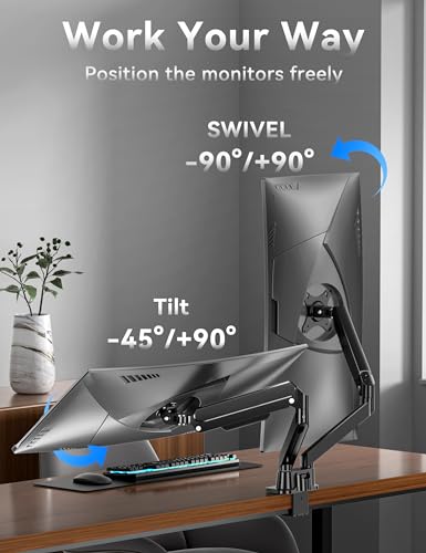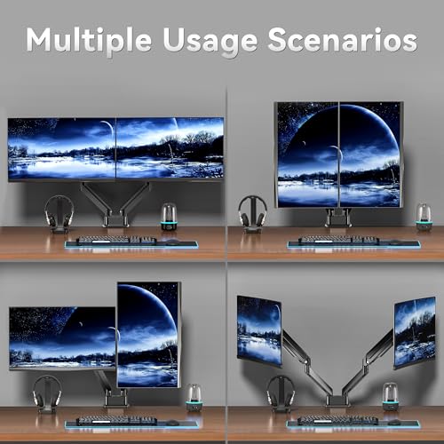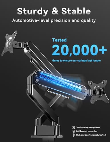 HEYMIX PROFESSIONAL - حامل شاشة مزدوج الذراع قابل للتعديل بزنبرك غاز فيسا من هايميكس، لشاشة الكمبيوتر والألعاب LED/LCD حجم 13 إلى 32 بوصة حتى 9 كجم مع حلقتين تثبيت