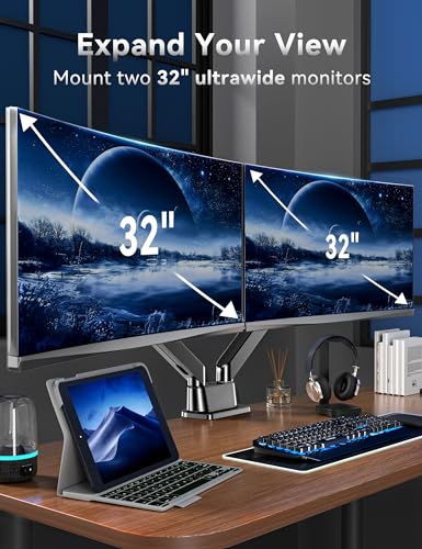 - [تصميم مزدوج الذراع يتميز بالمرونة]: يتوافق حامل الشاشة المزدوج المزود بذراع زنبركي مع معظم الشاشات بحجم 13 بوصة (33 سم) إلى 32 بوصة (81 سم) ووزن 2 كجم إلى 9 كجم مع فتحات تثبيت فيسا 75 × 75 ملم أو 100 × 100 ملم. مع أننا نقترح في دليل المستخدم للحصول على أفضل تجربة باستعمال شاشة مقاس 27 بوصة بوزن 6.5 كجم كحد أقصى (توافر اللغة العربية غير مضمون).