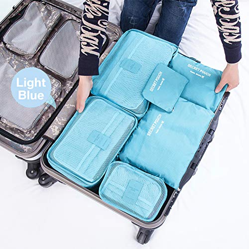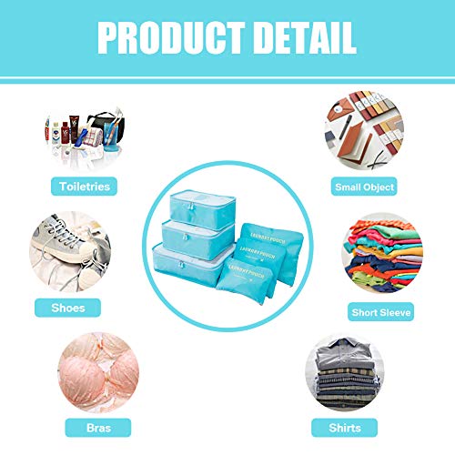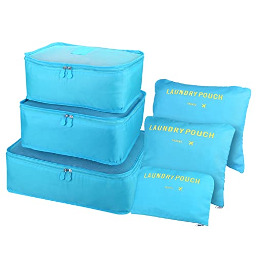 HEYOMART - مجموعة مكعبات التعبئة للسفر من هيومارت 6 قطع لتنظيم شنط السفر وشنطة تخزين واكياس ضاغطة ملابس مع شنطة برباط ازرق نايلون