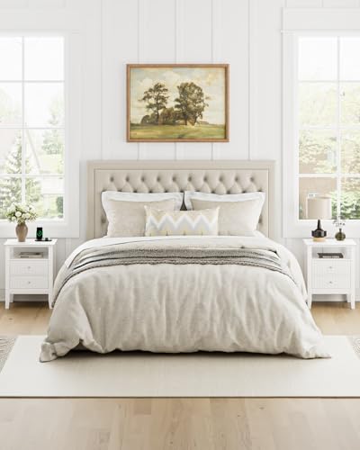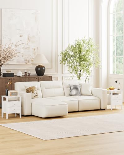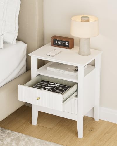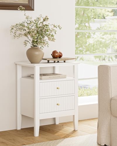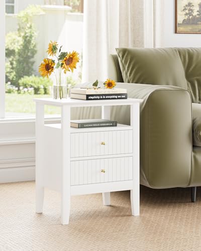 HEYZOEY - طاولة بجانب السرير مع 2 درج من الخشب من هيزوي، طاولة جانبية عصرية تناسب غرفة المعيشة وغرفة النوم والمكتب، لون أبيض