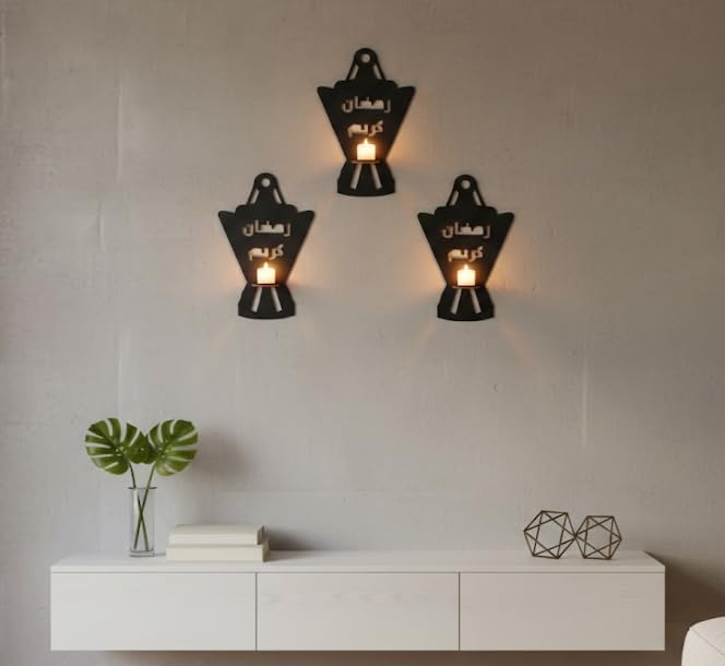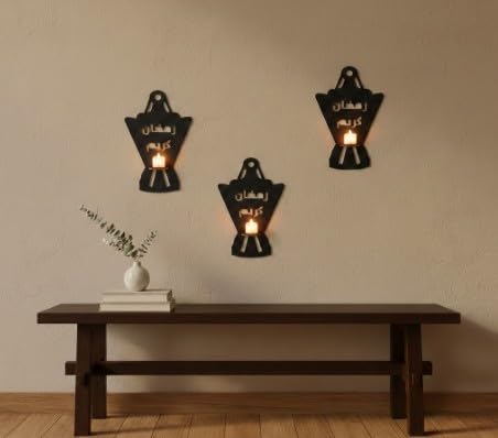 Generic - طقم ديكور حائط 3 قطع رمضان كريم من HFR Artech فوانيس خشبية مودرن بإضاءة LED دافئه خشب MDF فاخر 4 مم مقاس 30×40 سم تركيب سهل بدون مسامير أو تكسير مزود بلاصق دبل فيس قوى
