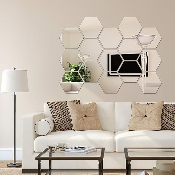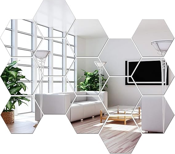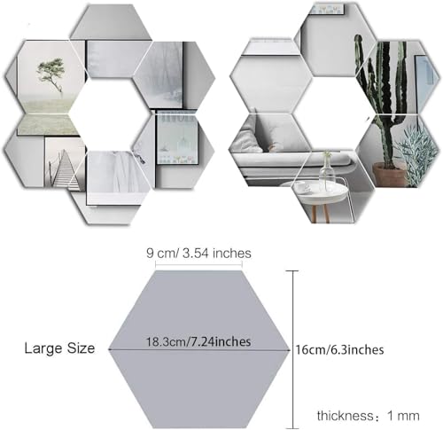 - مجموعة مرآة زخرفية: ملصقات مراية أكريليك سداسية الشكل مكونة من 7 قطع تصنع عرضًا هندسيًا مذهلاً للحائط يضيف عمقًا وأبعادًا إلى أي غرفة.