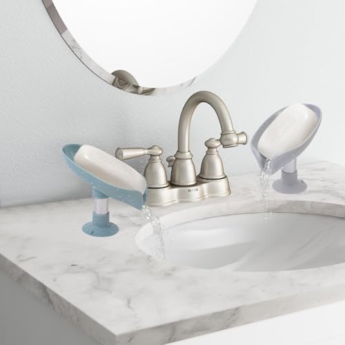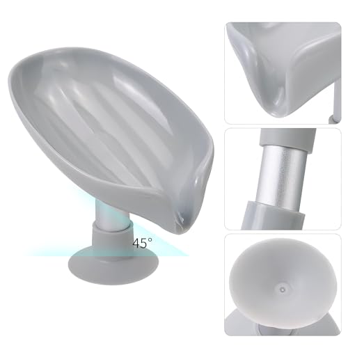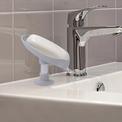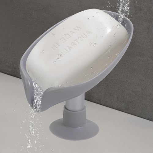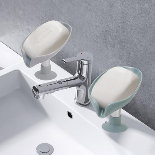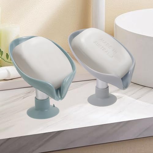 HFZRZFH - صبانة ذاتية التصريف شكل ورقة مع كوب حامل قاعدة لاصقة، للاستحمام والحمام وحوض المطبخ، تحافظ على الصابون جاف ونظيف وسريع الجفاف، قطعتين