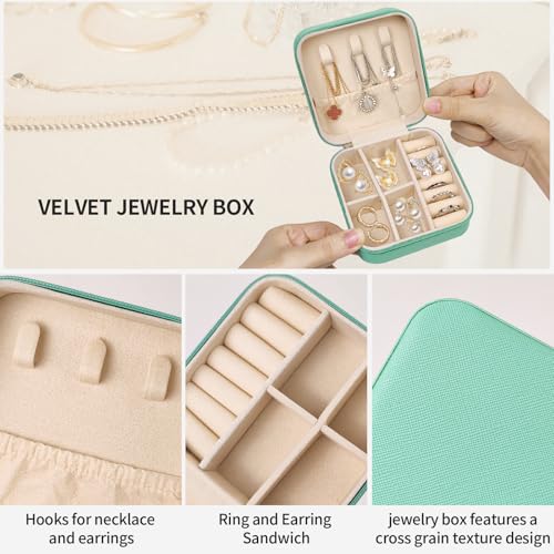 - تصميم تخزين مرن: يتميز بمقسمين قابلين للتعديل لتنظيم المجوهرات الصغيرة مثل القلادات أو الأساور، مما يضمن تخزين خالٍ من التشابك في حقيبة محمولة.