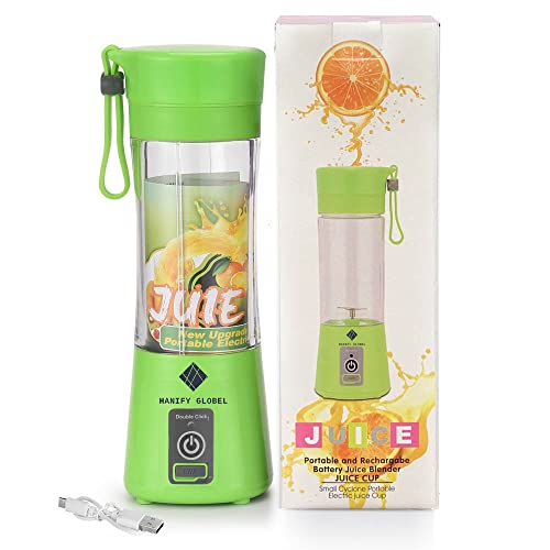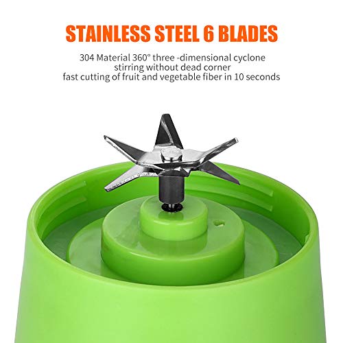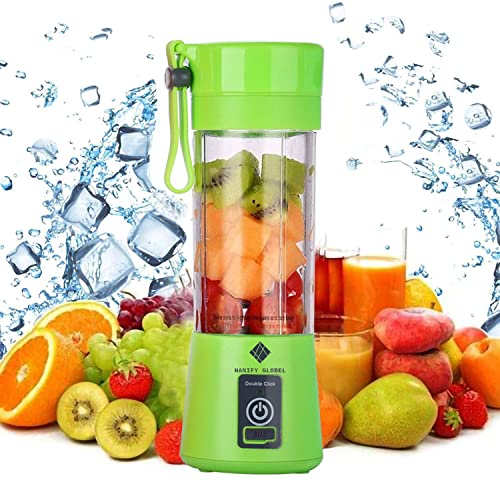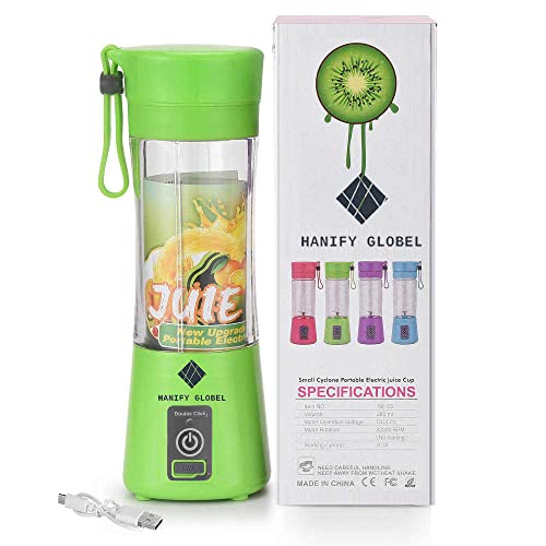 Generic - خلاط اتش جي كهربائي محمول قابل لإعادة الشحن بمنفذ USB و6 شفرات ثلاثية الأبعاد هانفي جلوبل لخلط قوي، مناسب لصنع السموذي والعصائر الطازجة، لون أخضر سعة 380 مل