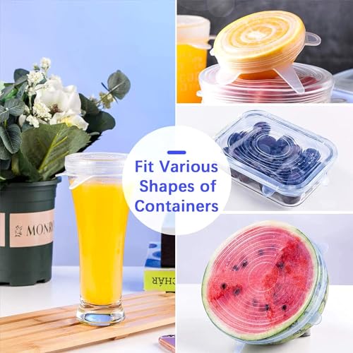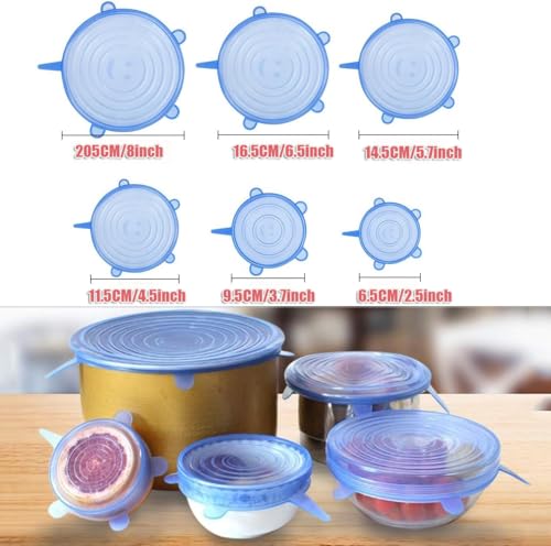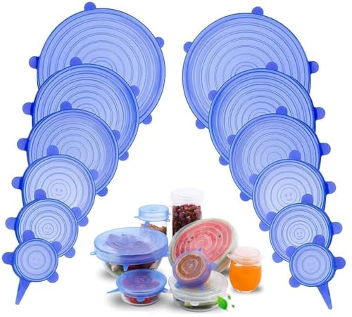 HGKOL - مجموعة أغطية سيليكون قابلة للتمدد وإعادة الاستخدام، أغطية طعام خالية من البيسفينول أ، أغطية آمنة للاستخدام في غسالة الأطباق، أغطية لبقايا الطعام وأواني الفاكهة - 6 مقاسات، 12 قطعة من اتش جي كيه أو ال