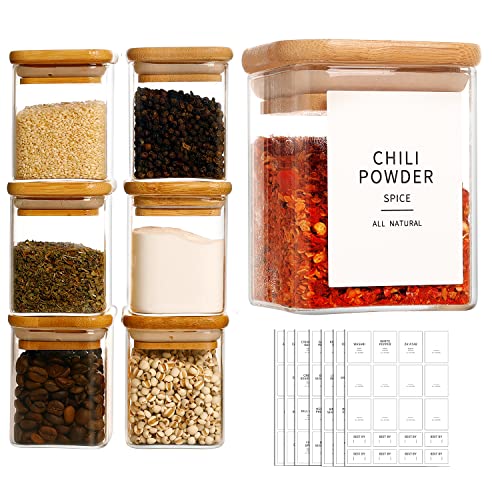 - 【جميلة ولطيفة】يمكن أن تساعدك برطمانات التوابل الزجاجية المربعة الجميلة المكونة من 12 قطعة بسعة 142 جم مع أغطية من الخيزران على فرز وتخزين الكثير من التوابل وجعل خزانة مطبخك نظيفة وجميلة.