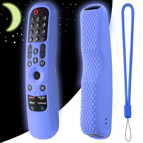 Hi Color - جراب حماية سيليكون لحماية جهاز التحكم بالتلفزيون متوافق مع أجهزة تحكم تلفزيون ال جي ماجيك C2 C3 G3 بشاشة او ال اي دي موديلات MR24GA/MR21GA/MR22GN/MR23GA يأتي مع حبل من هاي كولور، أزرق متوهج