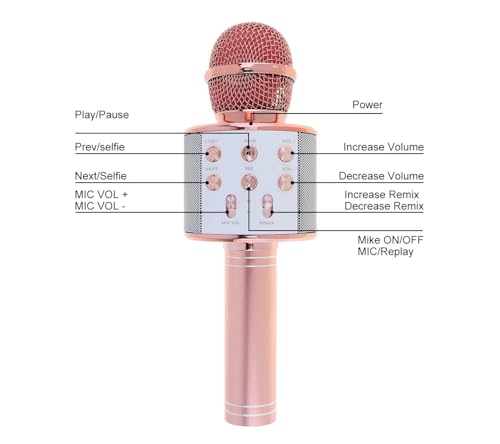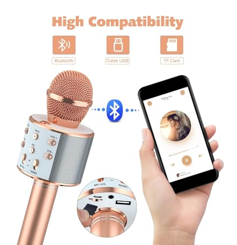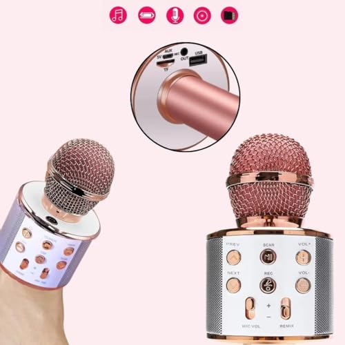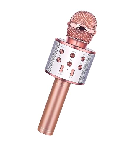 Generic - ميكروفون بلوتوثHI-FI مع سماعة صوت عالية الجودة - ترفيهي للأطفال - يدعم تسجيل الأغاني- متوافق مع أجهزة USB وبطاقات TF- مناسب للغناء والموسيقى (ذهبي وردي)