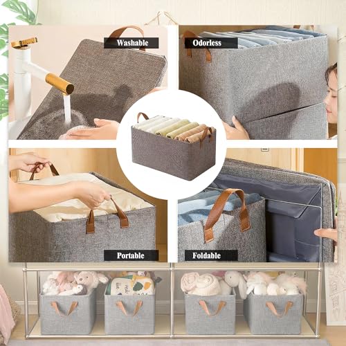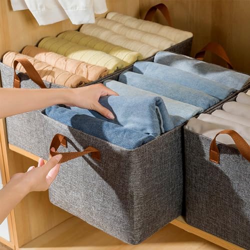 - 【مادة فائقة】صناديق تخزين دولاب الملابس ذات المقابض مصنوعة من أقمشة الكتان عالية الجودة، وهي عديمة الرائحة ومتينة وقوية بما يكفي لحمل أغراضك، مما يعطي واجهة صلبة وأنيقة للاستخدام طويل الأمد.