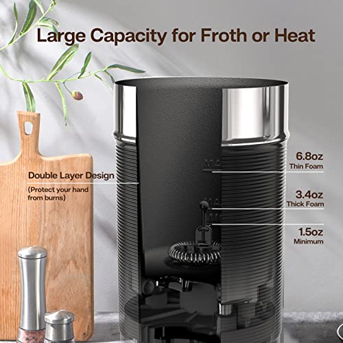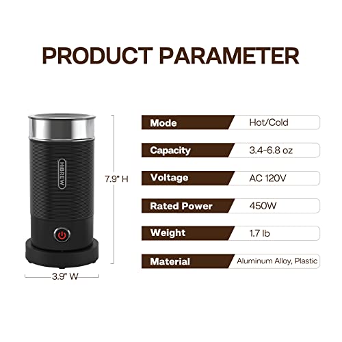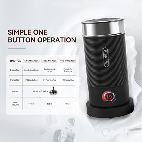 HIBREW - أداة خفق اللبن كهربائية أوتوماتيكية 3 في 1 للشوكولاتة الباردة/الساخنة واللاتيه والكابتشينو من هيبريو، سخان اللبن 3 في 1 300 مل 450 وات M1A (لون أسود)