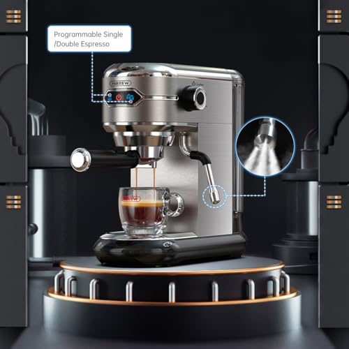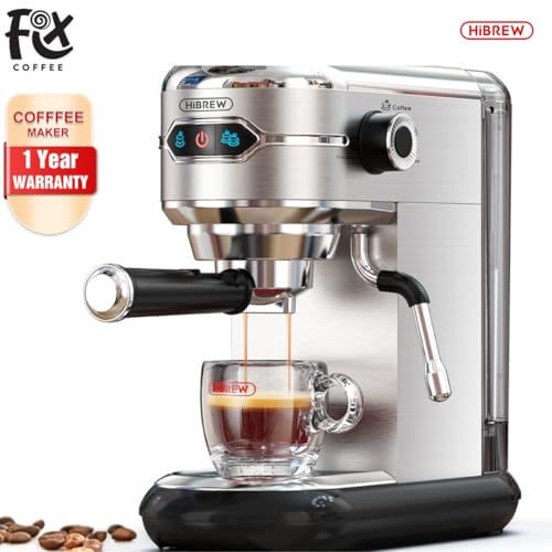 HIBREW - هيبريو ماكينة تحضير القهوة شبه الاوتوماتيكية H11 المزدوجة سعة 19 بار فائقة النحافة ESE POD ومسحوق نظام تسخين سريع صانع رغوة قابل للتعديل خزان مياه للازالة تصميم فضي