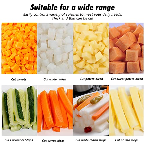 - 【قطاعة خضروات للجميع】مع قطاعة البطاطس، يمكنك بسهولة قطع الشرائط في ثوانٍ. مثالي للبطاطس والجزر والخيار والبصل والخضروات الأخرى. استمتع بقص احترافي سريع في مطبخك.