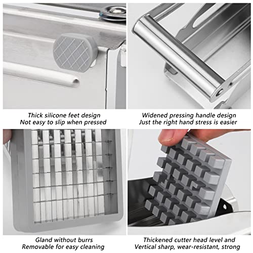 - 【جودة عالية】قطاعة بطاطس مقلية احترافية: ستانلس ستيل عالي الجودة، مقبض ممتد، سعة أكبر، قاعدة أقوى، شفرات متينة بجودة المطاعم.
