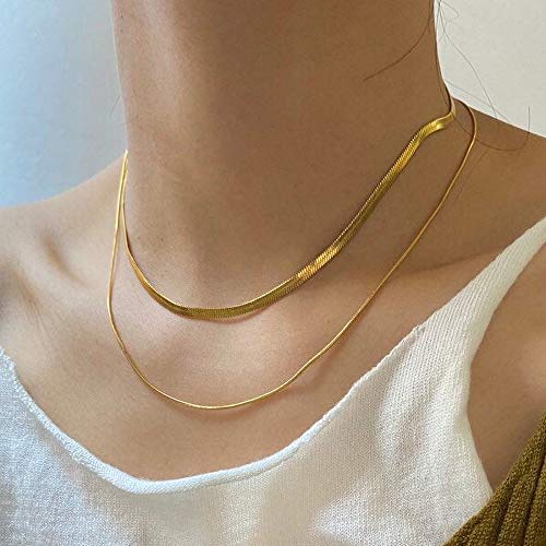 Hidepoo - سلاسل ذهبية من هايدبو للنساء سلسلة معدنية مطلية بالذهب عيار 14 قيراط على شكل ثعبان متعرج طبقات مجوهرات هدايا معدن غير معروف