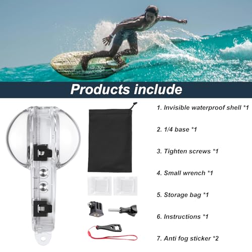 Higatful - جراب غير مرئي للغوص تحت الماء لكاميرا انستا 360 X4، غطاء حماية مانع للرذاذ ومقاوم للماء حتى 50 متر مع ملحقات للتثبيت