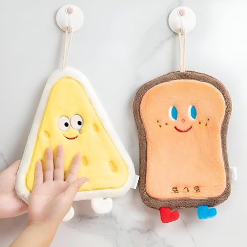 Generic - فوط حمام عالية الامتصاص - فوط يد من الصوف المرجاني الناعم بتصميمات كرتونية زاهية، سريعة الجفاف، حلقة تعليق لسهولة الاستخدام في الحمام او المطبخ، اشكال متعددة، عبوة من قطعتين