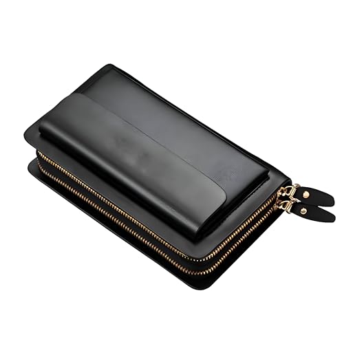 Generic - محفظة جلد بسعة عالية - شنطة يد صغيرة عملية للرجال بسوست مزدوجة وتصميم نحيف ومادة متينة ومساحات تخزين كبيرة للسفر والعمل
