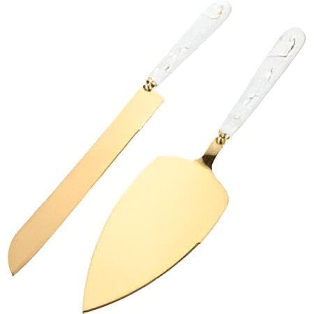 Generic - مجموعة تقديم الكيك الراقية - سكين من الستانلس ستيل مع مقبض رخامي لتقطيع دقيق، مصممة للحفلات والاستخدام المنزلي، خيار مزدوج الالوان