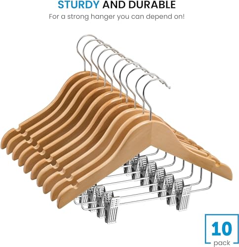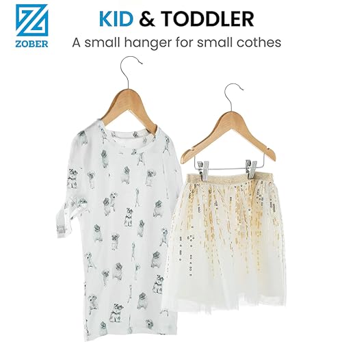 ZOBER - شماعة خشب مزودة بمشابك للأطفال، شماعات أطفال خشب ناعمة ومتينة/ شماعات للأطفال/ شماعة بخطاف يدور بزاوية 360 درجة - شماعات رائعة للأطفال الصغار لتعليق الفساتين والجيب والبناطيل (طبيعي، 10 قطع)