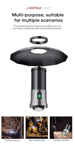 Generic - مصباح يدوي عالي الطاقة لمسافات طويلة قابل لإعادة الشحن ومصباح يدوي للتخييم والمشي لمسافات طويلة ومقاوم للماء وأضواء الطوارئ الخارجية فائقة السطوع وتركيز قابل للتعديل