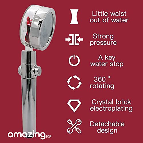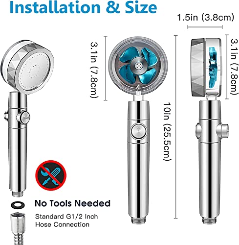- ✪ 【وضع توفير الطاقة】تحتوي رأس الدش على زر تشغيل / إيقاف. ما عليك سوى الضغط على الزر الموجود على مقبض الفوهة لإيقاف تدفق المياه في أي وقت.