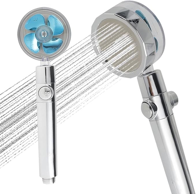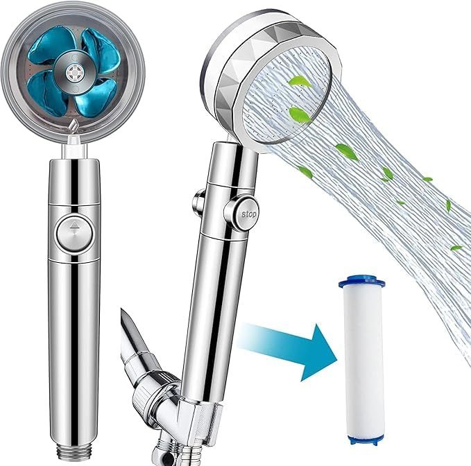 Generic - رأس دش عالي الضغط، رأس دش تربو دوار بزاوية 360 درجة مع مروحة لزيادة تدفق الماء، رأس دش مع مروحة هيدروجينية محمولة عالية الضغط و زر إقاف لتوفير المياه وفلتر لتنظيف المياه