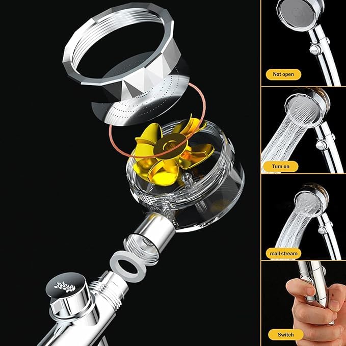 - تجربة سبا فاخرة - يخرج الماء بنمط دوار جميل ويجعلك تشعر وكأنك تجربةٌ في المنتجعات الصحية. رأس الدش هذا سهل التركيب للغاية. لا تترك رأس الدش فقط بالضغط على زر الإيقاف وأيضًا قم بإيقاف تشغيل الصمام. لا تستخدم رأس الدش هذا على الدش الكهربائي. يحتوي الهيكل على طلاء كهربائي من الطوب الكريستالي.