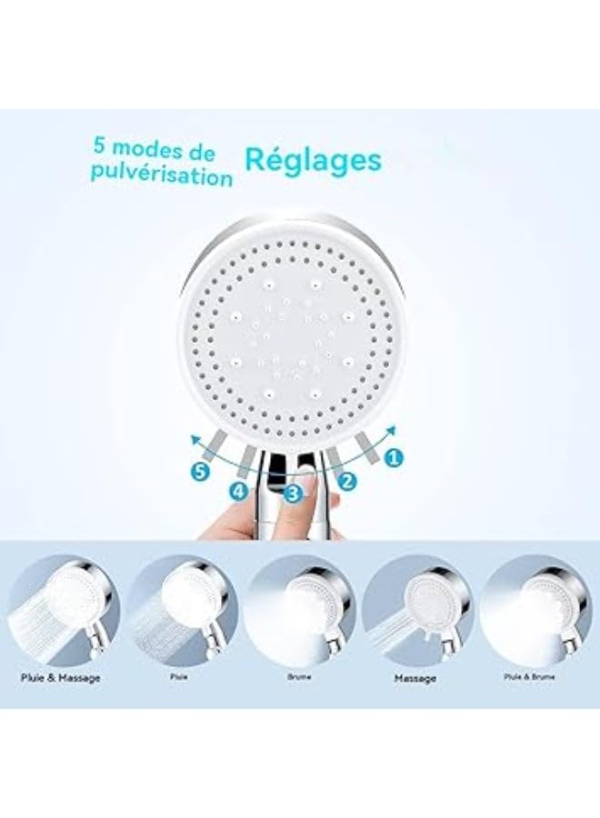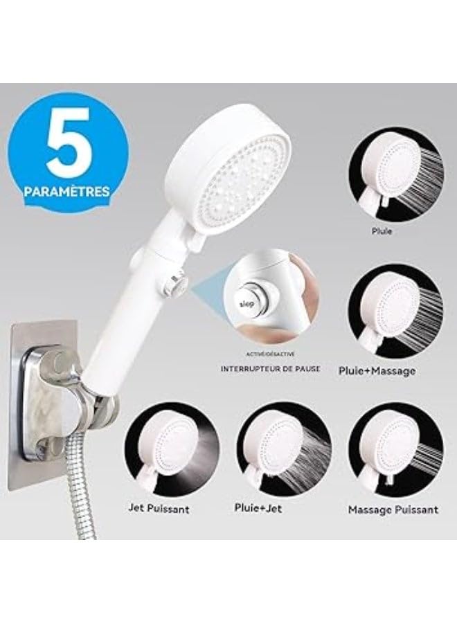 generic - راس دش عالي الضغط، دش يدوي موفر للماء، 5 انواع نفاثة، محمول باليد، للاستحمام والمنتجعات الصحية، راس دش مربع عصري محمول باليد بلون فضي