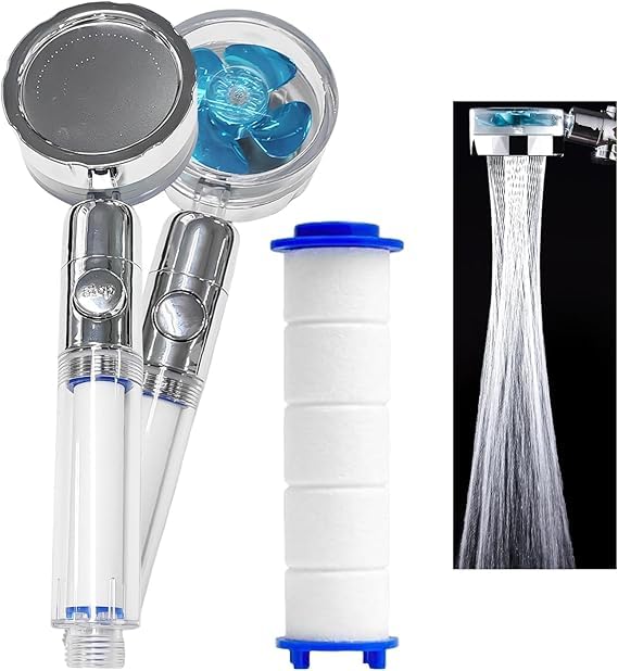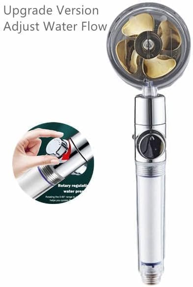 Generic - رأس دش عالي الضغط بمفتاح توفير ماء مع مروحة توربين، دوران 360 درجة، لون فضي