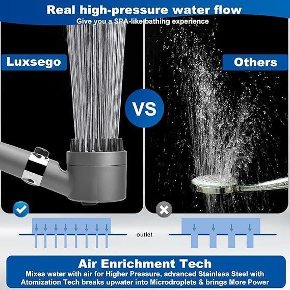 - ضغط مزدوج للمياه العاصفة: تضاعف سماعة الدش ذات التصميم الذكي قوة تدفق المياه حتى عندما يكون الضغط ضعيفًا.