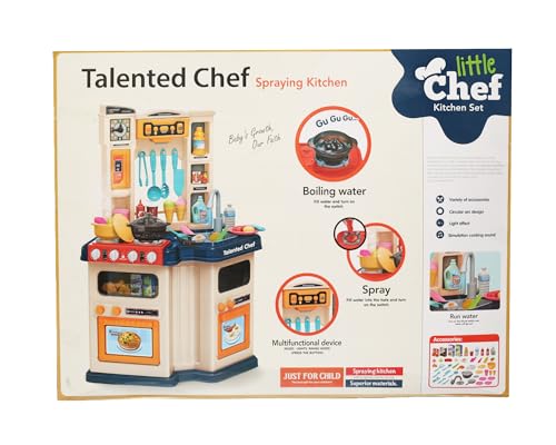 Genaric - مجموعة ألعاب مطبخ من 67 قطعة مقاس 77 سم تتميز برذاذ وفقاعات وتأثيرات مائية وموسيقى وضوء وصوت تتطلب 9 بطاريات ايه ايه (غير متضمنة) - متعددة الألوان