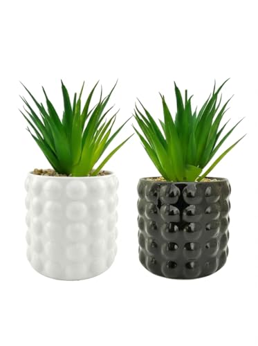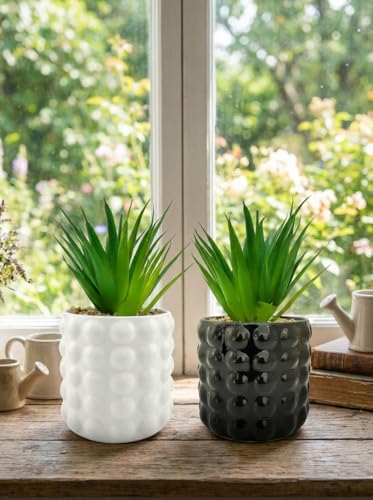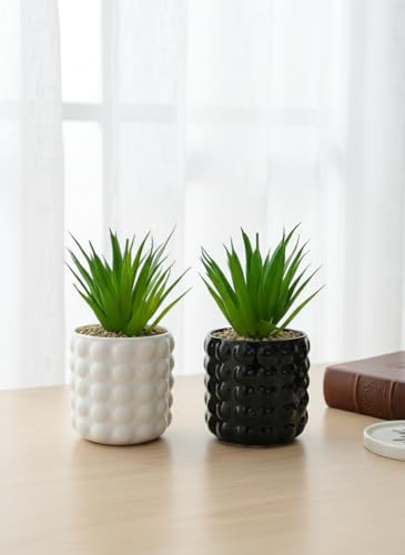 Generic - نبات صبار صناعي عالي الجودة في وعاء سيراميك بتصميم فقاعات أنيق - ديكور منزلي مكتبي عصري للمنزل والمكتب (أبيض وأسود، طقم من 2)