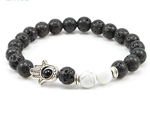 Generic - سوار اليد حجر الحمم للرجال و النساء الحجر الطبيعي عالية الجودة لون اسود وابيض
