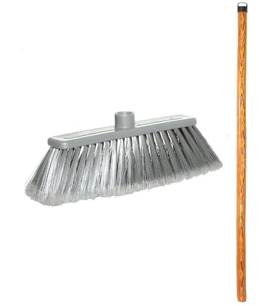 Generic - مكنسة وفرشاة غبار عالية الجودة (فرشاة مقشة ناعمة لون رمادي معا عصا خشبيه)
