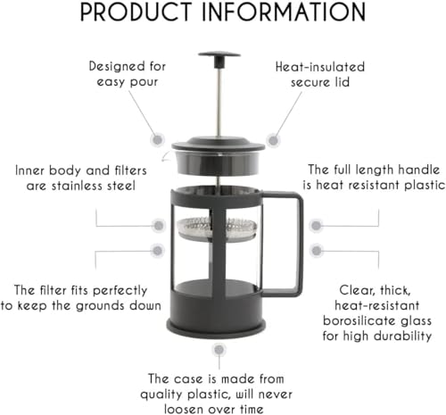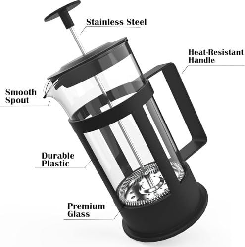 Generic - كوفي بريس عالي الجودة مع مصفاة استانلس لتحضير القهوة والفوم – تجربة مذاق احترافية في المنزلون أسود سعة 350 ملي ^_^