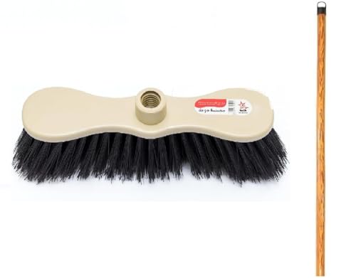 Generic - مكنسة وفرشاة غبار عالية الجودة (مكنسه خشنة لون بيج وشعيرات اسود معا عصا خشبيه)