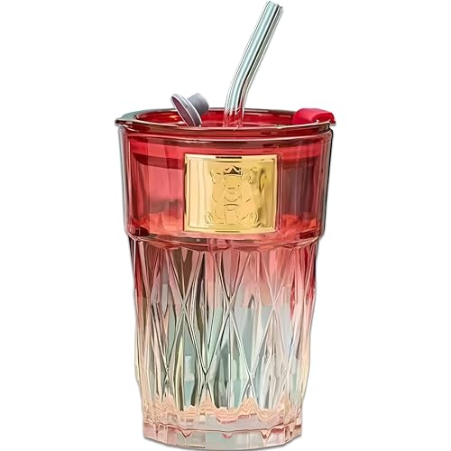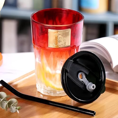 Generic - كوب زجاجي عالي الجودة للمياه بتصميم جذاب مزود بكوب قهوة بغطاء وشالمو مثالي للمناسبات الفاخرة خفيف الوزن ومتين احمر
