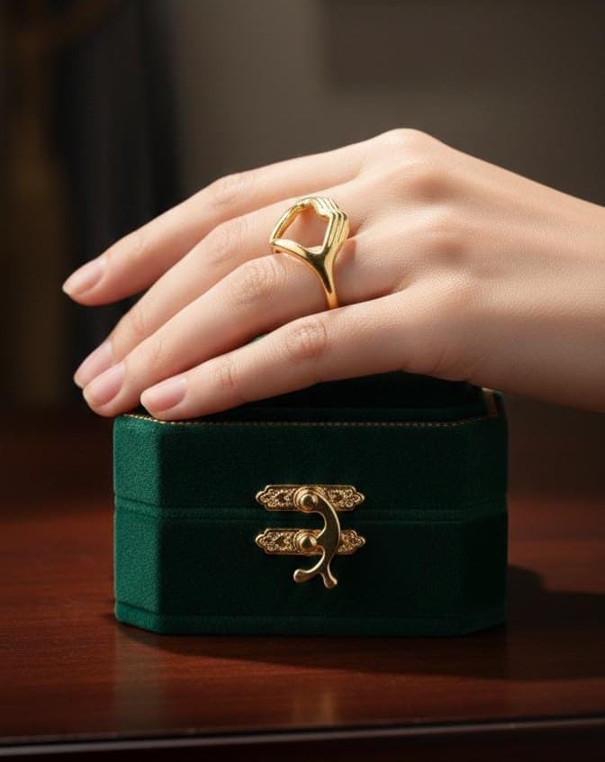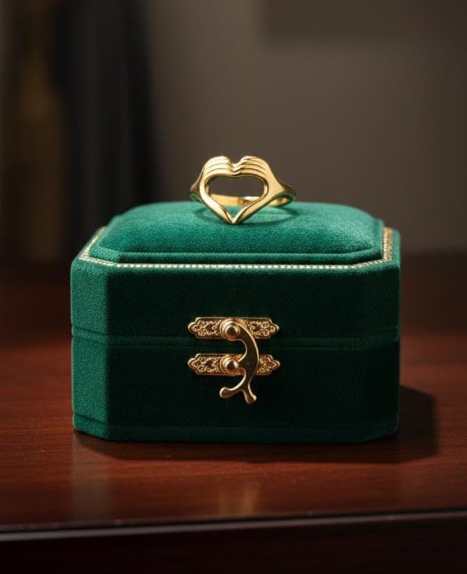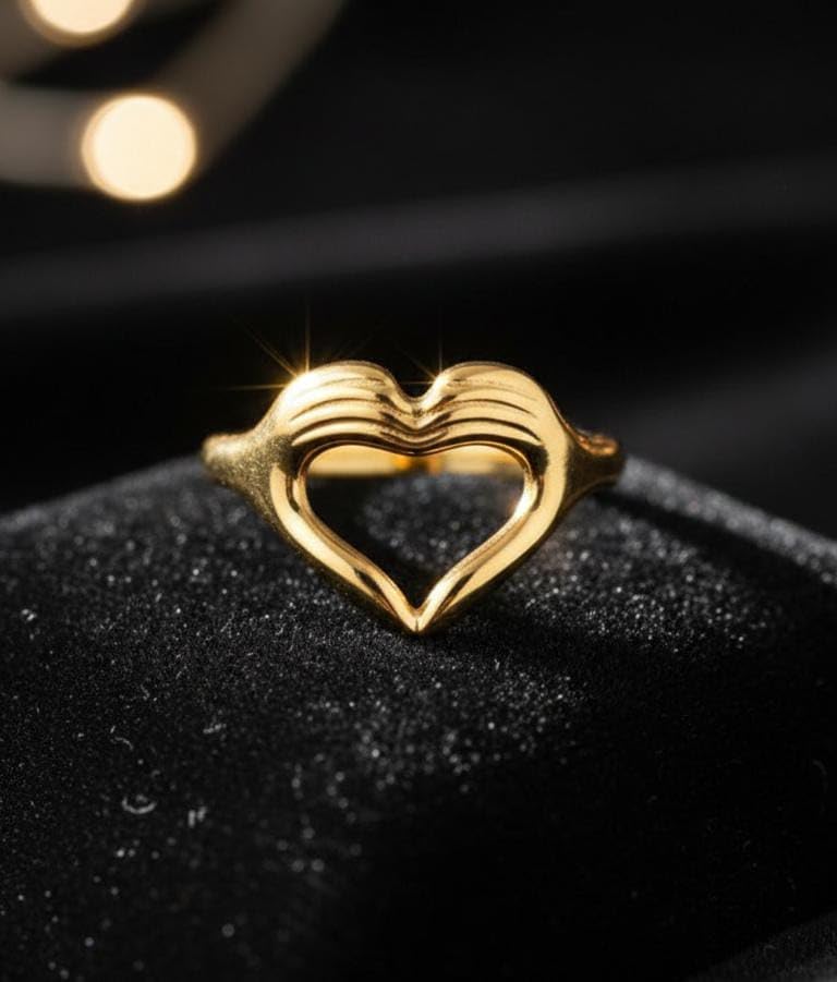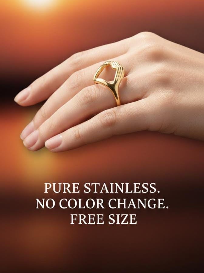 Generic - خاتم عناق عالي الجودة على شكل قلب - ستانلس ستيل بلون ذهبي - مقاس قابل للتعديل للنساء