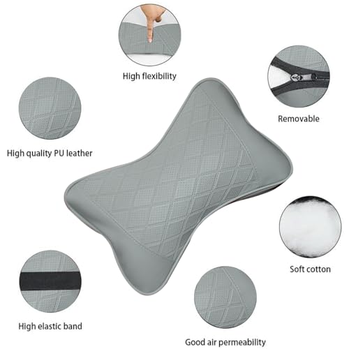 Generic - 2 قطعة من مسند الرأس والرقبة مصنوع الجلد عالي الجودة – موديل AM-06 - لون رمادي